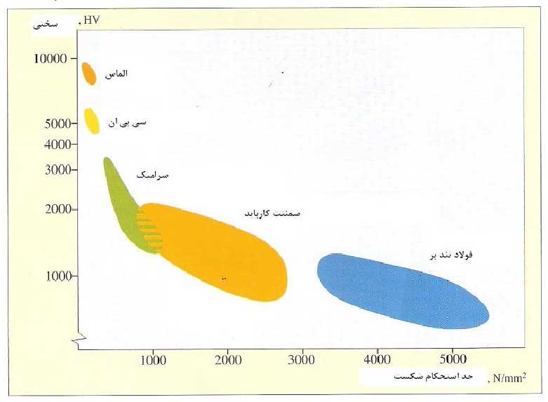 مواد سخت به مواد سختتر از سخت ترین فولاد ها اشاره میکند.سخت ترین این مواد الماس است پس از ان سی بی ان و سرامیک می باشد.بعد از اینها سمنتت کارباید است که امروزه مهمترین مواد سختی است که گستره وسیعی از سختی و تافس را مطابق نمودار پوشش میدهد.