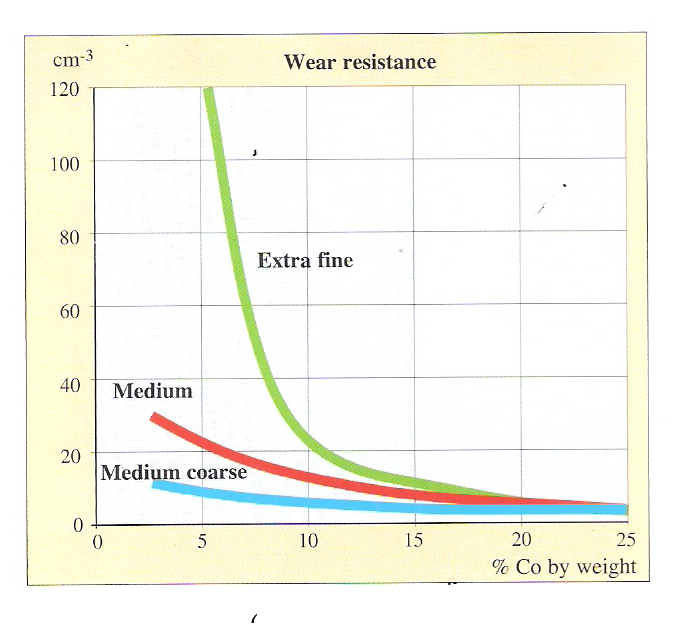 -گریدهایی با میزان 20%-10 وزنی کبالت و اندازه دانه های 1-5 میکرومتر تنگستن کارباید، مقاومت مکانیکی ، تافس و مقاومت سایشی بالایی دارند.