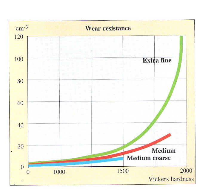 برای سمنتت کاربایدهای عادی ، مقاومت سایشی و چقرمگی مرتبط با مسیری است که بهبود یکی موجب تخریب دیگری میشود.