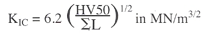 از اندازه گیری طول ترک گوشه ها در سطح اثر ناشی سختی سنجی ویکرز استفاده می کند. فاکتور شدت تنش