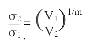 تنشهای شکست به ترتیب درحجم های V1و V2 هستند.و m عامل مشتق از پهن شدگی در تنش شکست مواد است .