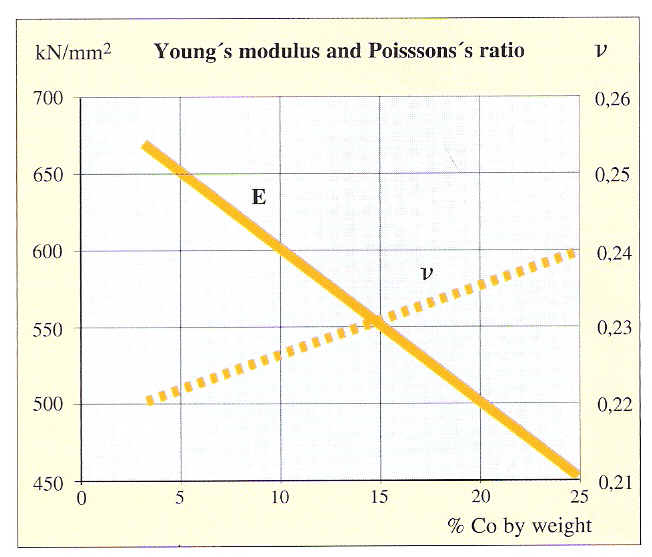 سمنتت کارباید ماده ای بسیار صلب است . مدول الاستیسیته یا مدول یانگ (E) آن دوتا سه برابر بالاتر از فولاد است و با افزایش مقدار فاز هم بند به صورت خطی افزایش می یابد. فاز گامای اضافه مدول یانگ را کاهش می دهد. اندازه گیری دقیق صرفا از روی منحنی تنش –کرنش مشکل است. بنابراین اندازه گیری شدت امواج طولی و عرضی نتایج قابل اطمینان تری در پی خواهد داشت.