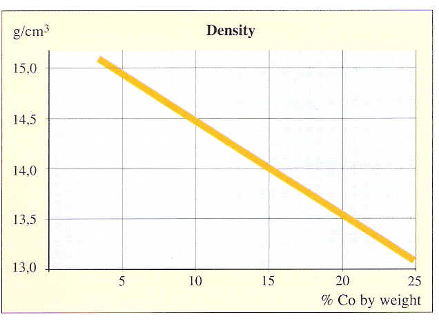 چگالی به عنوان تابعی از مقدار کبالت .(فقط کاربایدهای WC-CO)