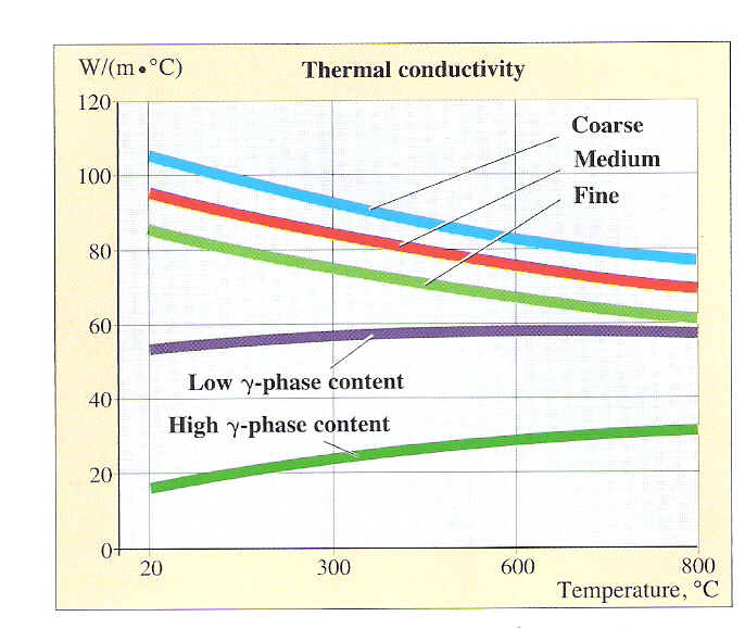اندازه دانه های تنگستن کارباید تاثیر کمی دارد اما وجود فاز لا هدایت حرارتی را به طور قابل ملاحظه ای کاهش میدهد.